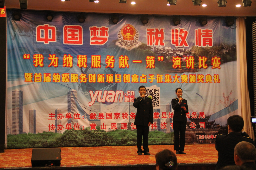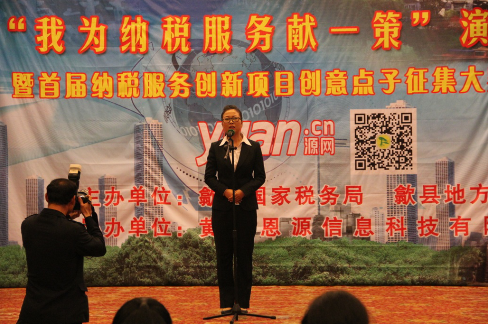 2016年4月22日,由歙縣國、地稅局主辦的《“我為納稅服務獻一策”演講比賽 暨首屆納稅服務創(chuàng)新項目創(chuàng)意點子征集大賽頒獎典禮》在歙縣飯店隆重召開。我公司參加演講員工童群和“納稅服務”參賽獲獎8名員工參加了此次活動。