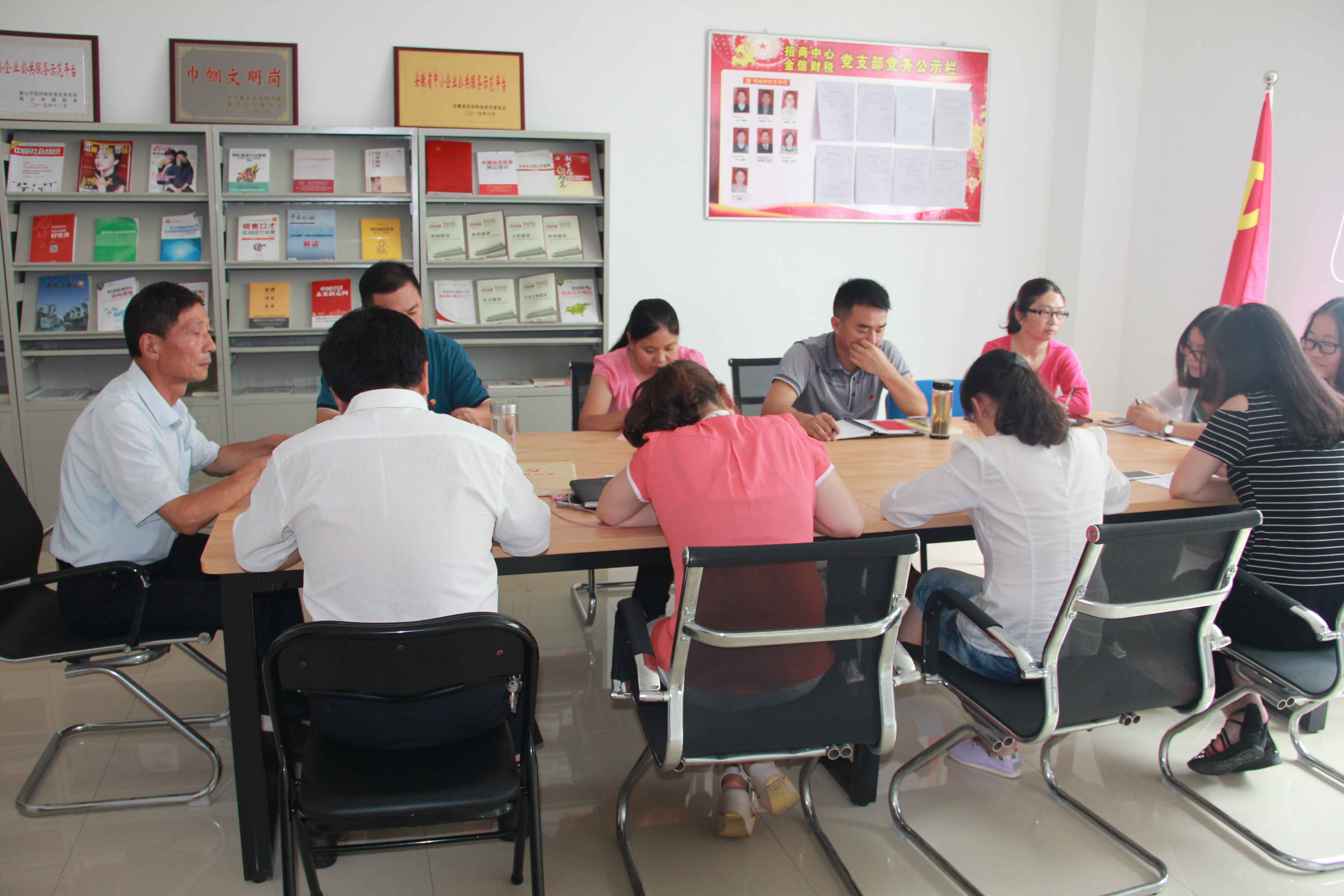 當(dāng)天下午,金信財稅聯(lián)合招商中心黨支部在招商中心二樓黨員活動室召開了“慶七一,金信財稅、招商中心聯(lián)合黨員大會”,支部全體黨員出席會議,會議由金信財稅黨支部組織委員吳云平主持。