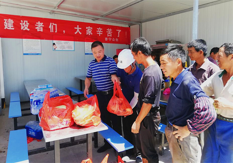 8月2日,中心主任胡海鋒來到香寧科技創(chuàng)業(yè)服務(wù)中心暨歙縣退役軍人創(chuàng)業(yè)孵化和就業(yè)促進(jìn)基地項目建筑工地,對冒高溫、戰(zhàn)酷暑的建設(shè)工友進(jìn)行親切慰問。胡海鋒主任將西瓜、礦泉水和解暑藥等慰問品分發(fā)到建設(shè)者手中,并感謝大家的辛勤付出,同時叮囑大家一定要注意防暑降溫,確保安全生產(chǎn)。