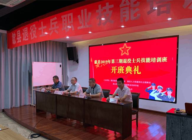 9月9日,歙縣2019年度第三期退役士兵職業(yè)技能培訓(xùn)期在我青創(chuàng)職業(yè)培訓(xùn)學(xué)校隆重開(kāi)班。縣退役軍人事務(wù)局局長(zhǎng)金自立、副局長(zhǎng)潘煉等領(lǐng)導(dǎo),青創(chuàng)職業(yè)培訓(xùn)學(xué)校、康順駕校負(fù)責(zé)人出席開(kāi)班儀式并發(fā)表講話。