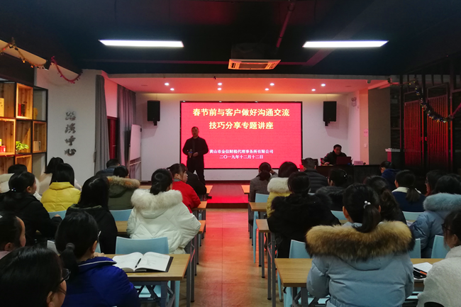 2019年12月12日,公司在一樓眾創(chuàng)空間召開“春節(jié)前與客戶做好溝通交流技巧分享”專題講座,全體員工50余人聆聽了公司總經(jīng)理胡海鋒的精彩解說(shuō)。