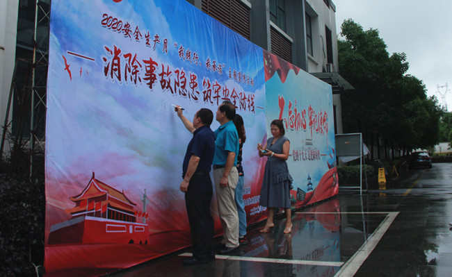 (上圖為企業(yè)負(fù)責(zé)人在“消除事故隱患,筑牢安全防線”安全生產(chǎn)月主題噴繪上鄭重簽字。)