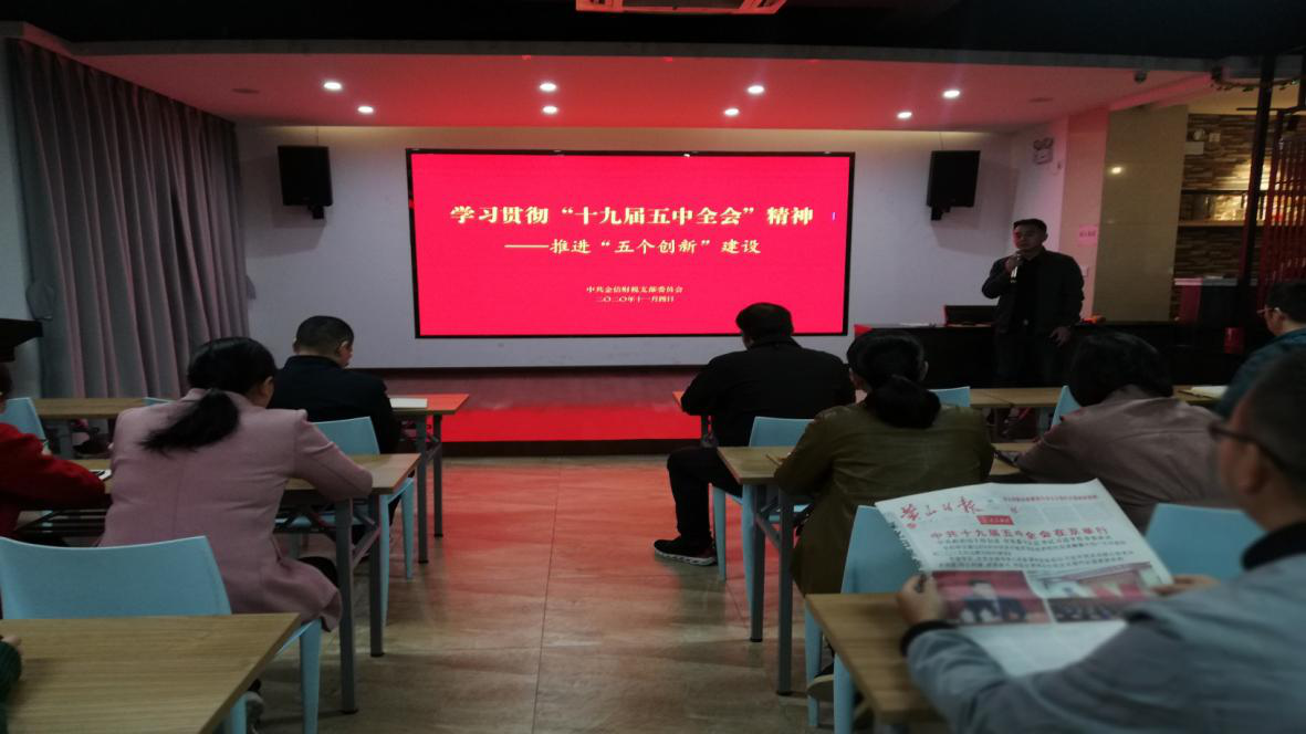 2020年11月4日,金信財稅黨支部在公司一樓會議室組織全體黨員及員工認(rèn)真學(xué)習(xí)“十九屆五中全會”精神,并結(jié)合公司實(shí)際,繼續(xù)大力推進(jìn)“五個創(chuàng)新”建設(shè)。支部宣委方志義在會上做動員講話,組委吳云平進(jìn)行學(xué)習(xí)部署,并且提出具體要求。