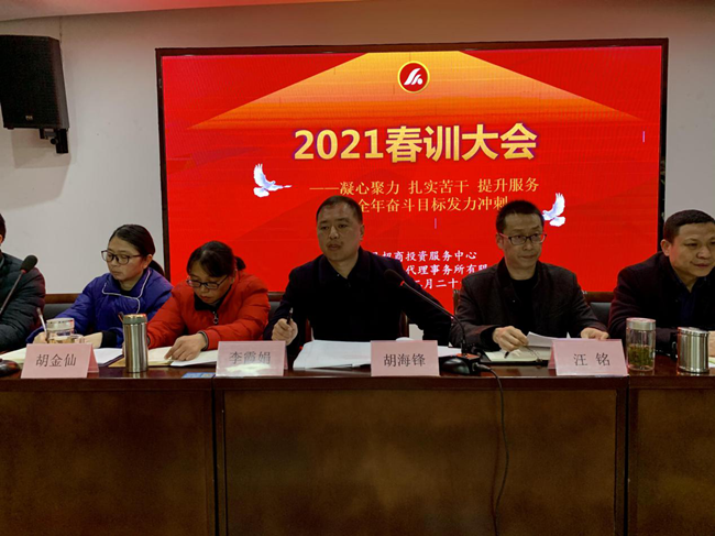 為更好地總結回顧2020年工作成效,謀劃和布局2021年各項工作,明確目標,細化措施,2月26日,招商中心、金信財稅2021春訓大會在中心一樓眾創(chuàng)空間如期舉行。公司全體員工60人參加會議,中心主任胡海鋒親自主持會議。