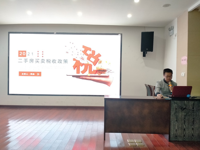 2021年4月24日,由點(diǎn)單財(cái)稅部柯淼主講的“二手房買賣稅收政策”專題PPT分享在一樓眾創(chuàng)空間舉行,園區(qū)企業(yè)負(fù)責(zé)人和中心財(cái)稅服務(wù)人員50余人參與此次分享。