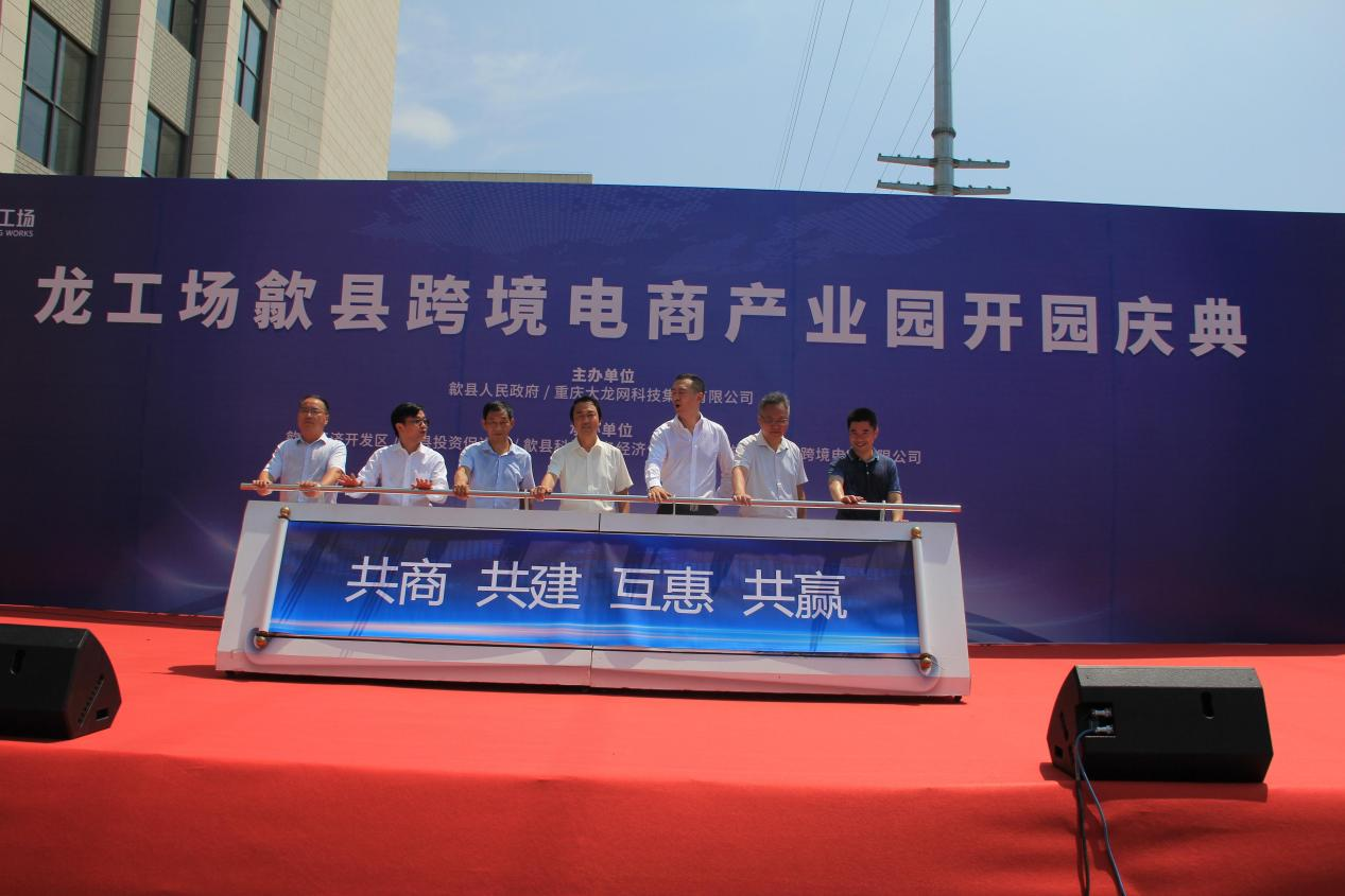 2021年7月6日,位于歙縣經(jīng)濟開發(fā)區(qū)二期香寧科創(chuàng)園內(nèi)的——龍工場歙縣跨境電商產(chǎn)業(yè)園盛大開園。歙縣人民政府副縣長鄭小毅,縣經(jīng)濟開發(fā)區(qū)管委會副主任汪璟峰,縣投資促進局局長潘偉,縣科技商務(wù)經(jīng)信局黨組書記葉志宏、副局長胡志堅,縣開發(fā)區(qū)投資開發(fā)有限公司董事長吳光玉等領(lǐng)導(dǎo)出席開園慶典,運營方大龍網(wǎng)集團副總裁夏彬、大龍網(wǎng)集團黨支部書記、運營中心總經(jīng)理謝秋,歙縣龍工場跨境電商服務(wù)有限公司總經(jīng)理劉濤,安徽香寧眾創(chuàng)科技服務(wù)有限公司總經(jīng)理胡海鋒等參加儀式。