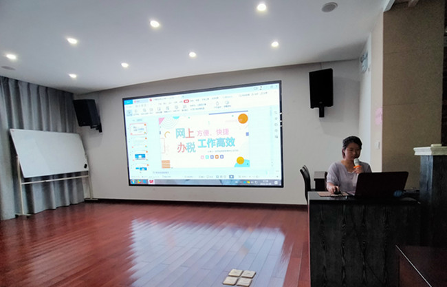 2021年10月9日,由歙縣招商投資服務(wù)中心舉辦,黃山市金信財稅代理事務(wù)所有限公司承辦,金信公司經(jīng)濟業(yè)務(wù)部(受理中心)技術(shù)人員王巧玲主講的“高效辦理網(wǎng)上稅務(wù)事項”專題PPT分享在一樓眾創(chuàng)空間舉行,園區(qū)企業(yè)負責人和中心財稅服務(wù)人員50余人參與此次分享。