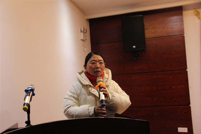 (上圖為優(yōu)秀班組負(fù)責(zé)人胡金仙發(fā)表獲獎(jiǎng)感言。)