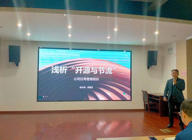 方志義經(jīng)理有著多年的從軍經(jīng)歷,平日工作謹小慎微,思考問題全面周到,在團隊管理方面有著豐富的經(jīng)驗。此次分享他主要圍繞日常管理中的“開源與節(jié)流”這一主題,以省財政廳印發(fā)《關(guān)于進一步厲行節(jié)約堅持過緊日子的若干舉措》的通知中提到的,控制壓減行政開支的十二條具體措施為切入點,從節(jié)約用電、用水、用紙及杜絕用餐浪費等方面分別進行詳細講解。方志義經(jīng)理還提到“開源節(jié)流”是企業(yè)永續(xù)經(jīng)營的法寶,勤儉節(jié)約是中華民族的傳統(tǒng)美德,節(jié)約需要我們每個人從身邊做起,從小事做起,節(jié)約每一度電、每一張紙、每一滴水、每一粒糧食,養(yǎng)成良好個人習慣,提升企業(yè)文化內(nèi)涵。經(jīng)過方志義經(jīng)理的用心介紹,使得參與人員對日常工作、生活中的節(jié)約意識有了進一步的提升,將對企業(yè)日后的發(fā)展發(fā)揮重要作用。