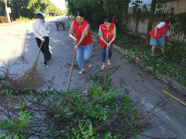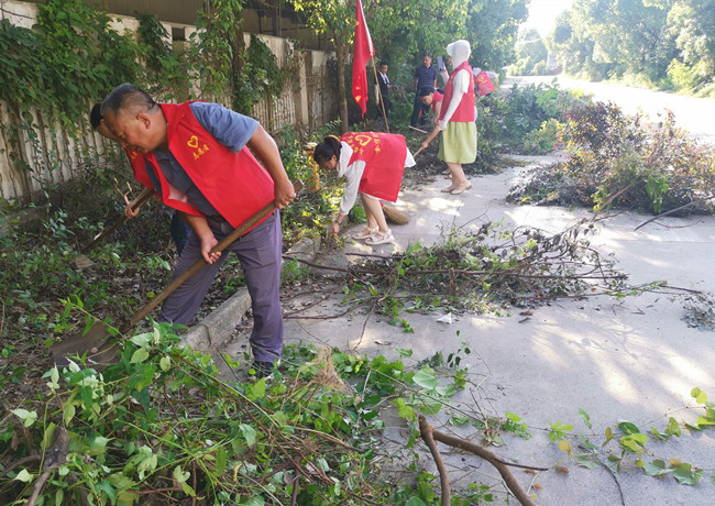 夏日炎炎,地面溫度接近40℃,但全體黨員熱情高漲,支部書記胡海鋒一馬當(dāng)先、率先垂范,對兩側(cè)的雜亂植物進(jìn)行清理;其他黨員也毫不示弱,利用各種工具參與其中,汗如雨下,順著臉頰酣暢流淌,浸濕前胸后背,但大家都毫不在意。經(jīng)過2個小時的緊張奮戰(zhàn),使園區(qū)這一路段由“雜草叢生”變成“眼前一亮”,大道更加寬敞、整潔。