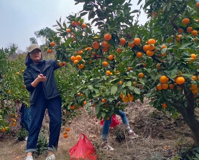第三站前往歙縣新溪口鄉(xiāng),漫山的桔樹參差錯(cuò)落,金黃色的桔子壓彎了枝頭,員工們興致高漲,在桔園里品嘗最新鮮的酸甜味道,體驗(yàn)采摘樂趣。