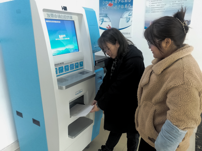 “現(xiàn)在公司有了自助領(lǐng)票終端,領(lǐng)發(fā)票就像在ATM機(jī)上取錢一樣簡(jiǎn)單方便,再也不用去稅務(wù)辦稅大廳排隊(duì)了。”2月10日,在歙縣富堨經(jīng)濟(jì)園區(qū)——黃山市金信財(cái)稅代理事務(wù)所有限公司內(nèi),一臺(tái)發(fā)票申領(lǐng)自助終端順利通過(guò)網(wǎng)絡(luò)調(diào)試。公司財(cái)務(wù)會(huì)計(jì)張捷在歙縣稅務(wù)局工作人員的示范引導(dǎo)下,以代理企業(yè)黃山市一家人豆業(yè)有限公司的身份快捷領(lǐng)出增值稅發(fā)票20份。整個(gè)領(lǐng)取過(guò)程從辦稅人微信實(shí)名掃碼到選擇單位、到發(fā)票領(lǐng)用,僅用了3分鐘,方便省時(shí)又高效。
