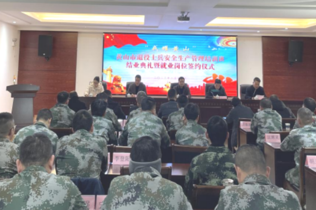 2月17日,“戎耀黃山”黃山市退役士兵安全生產(chǎn)管理培訓(xùn)班結(jié)業(yè)典禮暨就業(yè)崗位簽約儀式在歙縣青創(chuàng)職業(yè)培訓(xùn)學(xué)校舉辦。黃山市退役軍人事務(wù)局黨組書記、局長盛祁峰出席并講話,副局長朱樂華主持,歙縣應(yīng)急管理局和各區(qū)縣退役軍人事務(wù)局領(lǐng)導(dǎo)參加活動。
