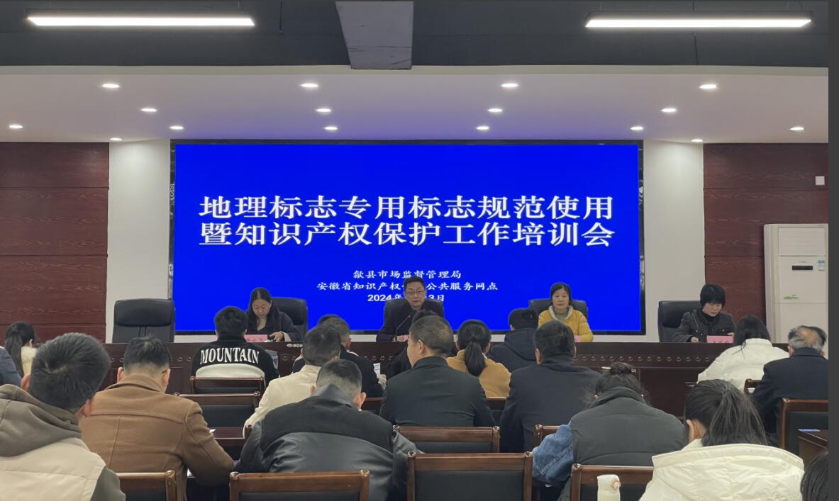 3月13日下午,由歙縣市場監(jiān)督管理局主辦的“地理標志專用標志規(guī)范使用暨知識產(chǎn)權(quán)保護工作培訓會”在黃山市首家知識產(chǎn)權(quán)“一站式”服務(wù)工作站——安徽香寧眾創(chuàng)科技服務(wù)有限公司召開。縣市場監(jiān)督管理局黨組成員丁大勇出席會議并講話,各市場監(jiān)管所專員、歙縣地理標志專用標志使用企業(yè)負責人、相關(guān)協(xié)會負責人,縣局知識產(chǎn)權(quán)股工作人員等70余人參加了會議。會議由縣市場監(jiān)管局知識產(chǎn)權(quán)股股長洪云飛主持。