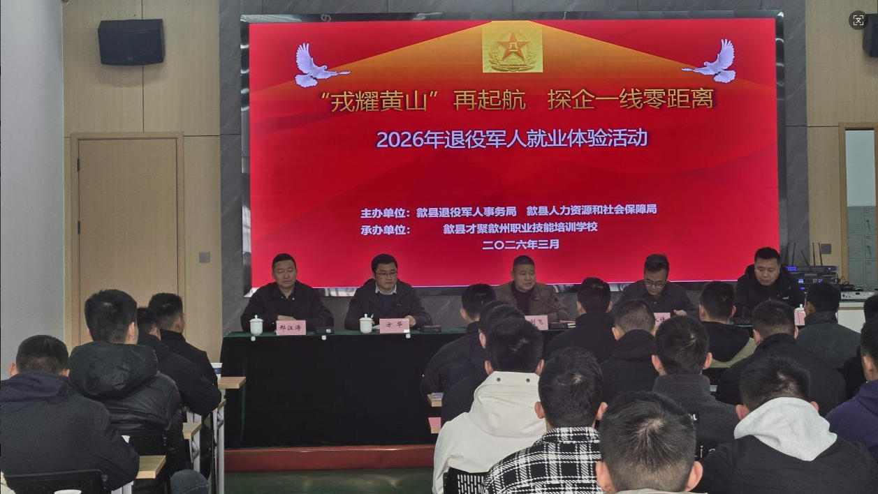 3月6日,為幫助退役士兵盡快適應(yīng)地方發(fā)展、提升就業(yè)創(chuàng)業(yè)能力,我縣2026年度退役士兵適應(yīng)性培訓(xùn)班在歙縣才聚歙州職業(yè)培訓(xùn)學(xué)校隆重開班。市、縣退役軍人事務(wù)局、縣人力資源和社會保障局相關(guān)負(fù)責(zé)人出席開班典禮,40余名退役士兵參加培訓(xùn)。